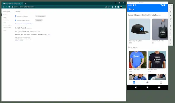Next, navigate to "chrome://inspect" to view a list of target devices to inspect. If your connected device or emulator is running an application containing a Portal, it will display here when loaded.